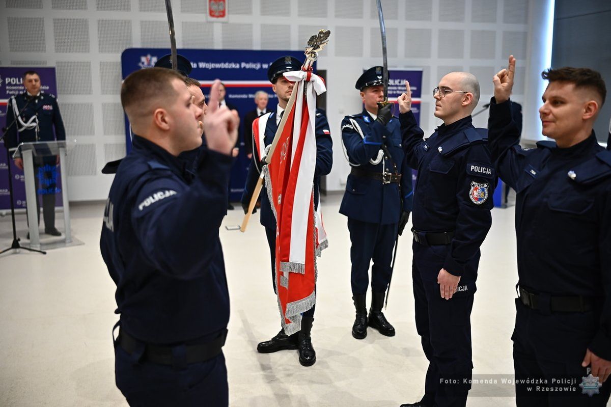 Nowi policjanci na Podkarpaciu. Pierwsze ślubowanie w 2026 roku [VIDEO, ZDJĘCIA]