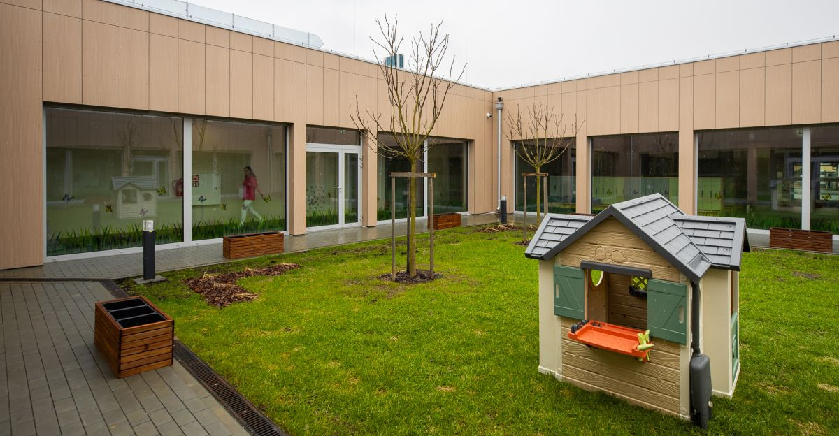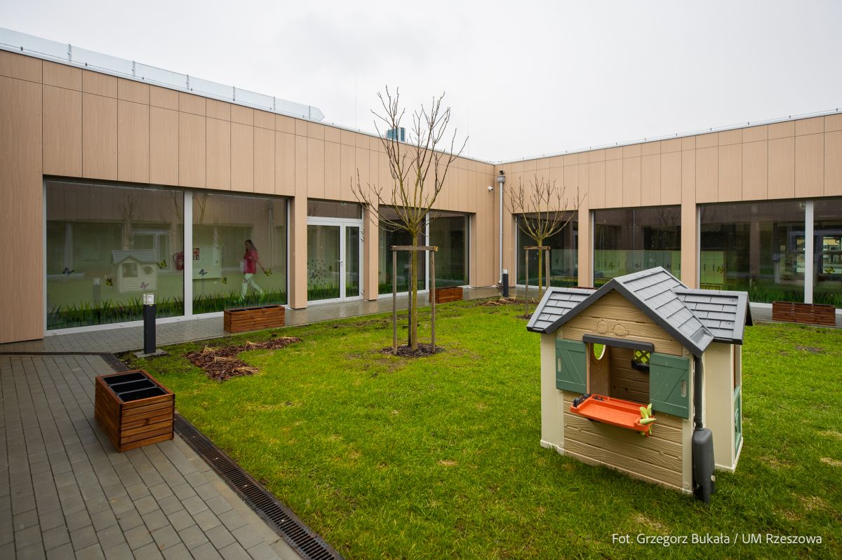 Nowy, dwunasty już miejski żłobek w Rzeszowie, to parterowy, ultranowoczesny budynek o powierzchni ponad 1,8 tys. m kw. Wyposażono go w sześć wielofunkcyjnych, klimatyzowanych sal, w pełni zautomatyzowane zaplecze kuchenne, pralnię oraz pokój dla matki karmiącej. Wyjątkowym rozwiązaniem architektonicznym jest wewnętrzny, zielony dziedziniec o powierzchni 235 m kw., który pozwala dzieciom na bezpieczny kontakt z naturą niezależnie od warunków pogodowych. Obiekt otacza również zewnętrzny plac zabaw oraz ogród warzywny.