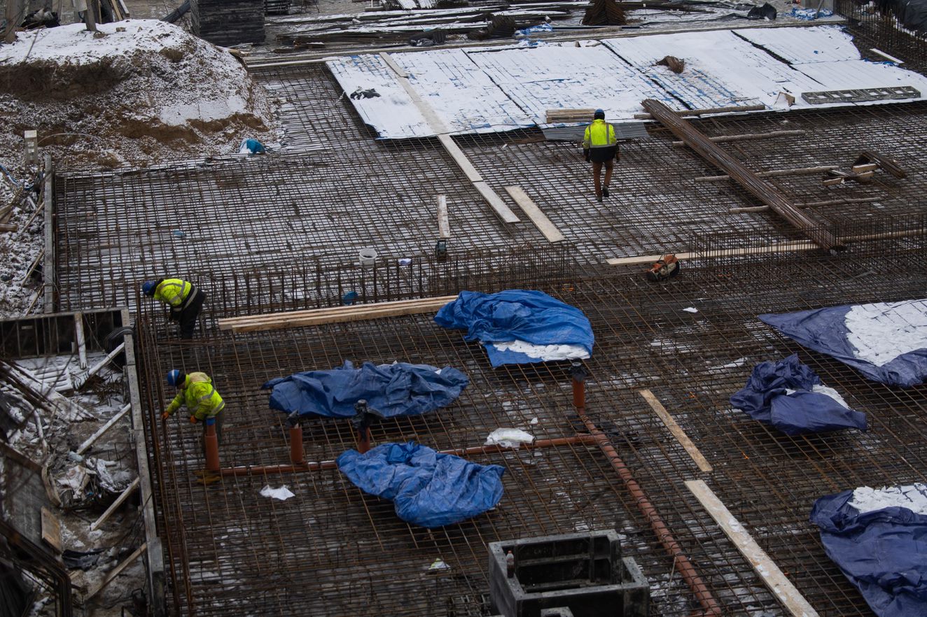 Firma Bimat wykonuje prace zgodnie z harmonogramem. Obecnie trwa m.in. zbrojenie i szalowanie płyty fundamentowej oraz szalowanie ścian fundamentowych. Przebudowywane i budowane są także instalacje podziemne.
