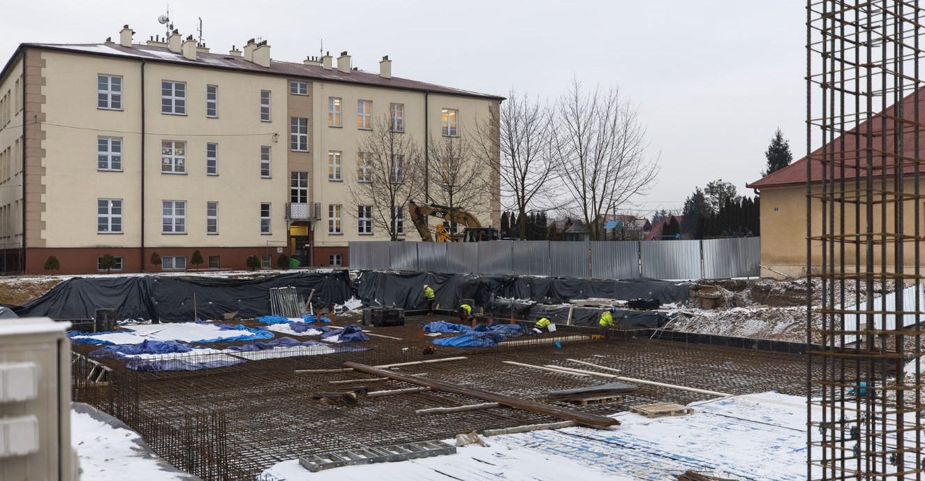 Wykonawca pracuje obecnie m.in. przy zbrojeniu płyty fundamentowej nowej części szkoły. Koszt całkowity inwestycji to ponad 17,5 mln zł. Zakończenie inwestycji zaplanowane jest na czerwiec 2024 r.