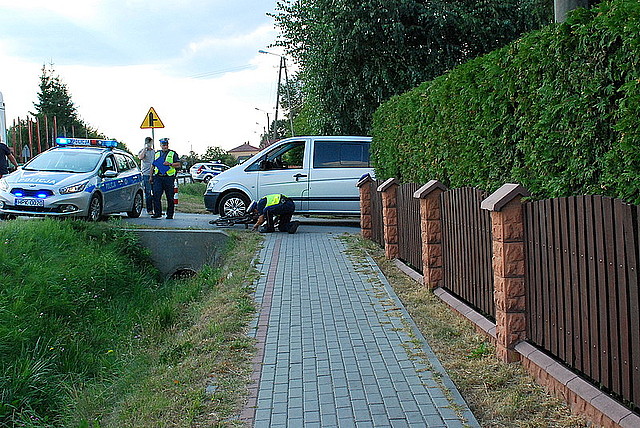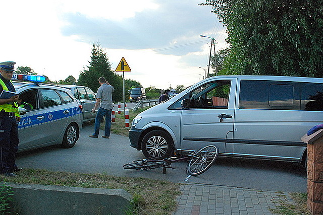 KOLBUSZOWA DOLNA / PODKARPACIE. Policjanci wyjaśniają okoliczności i przyczyny wypadku, do którego doszło wczoraj w Kolbuszowej Dolnej. Rowerzystka zderzyła się z wyjeżdżającym z bocznej drogi samochodem.